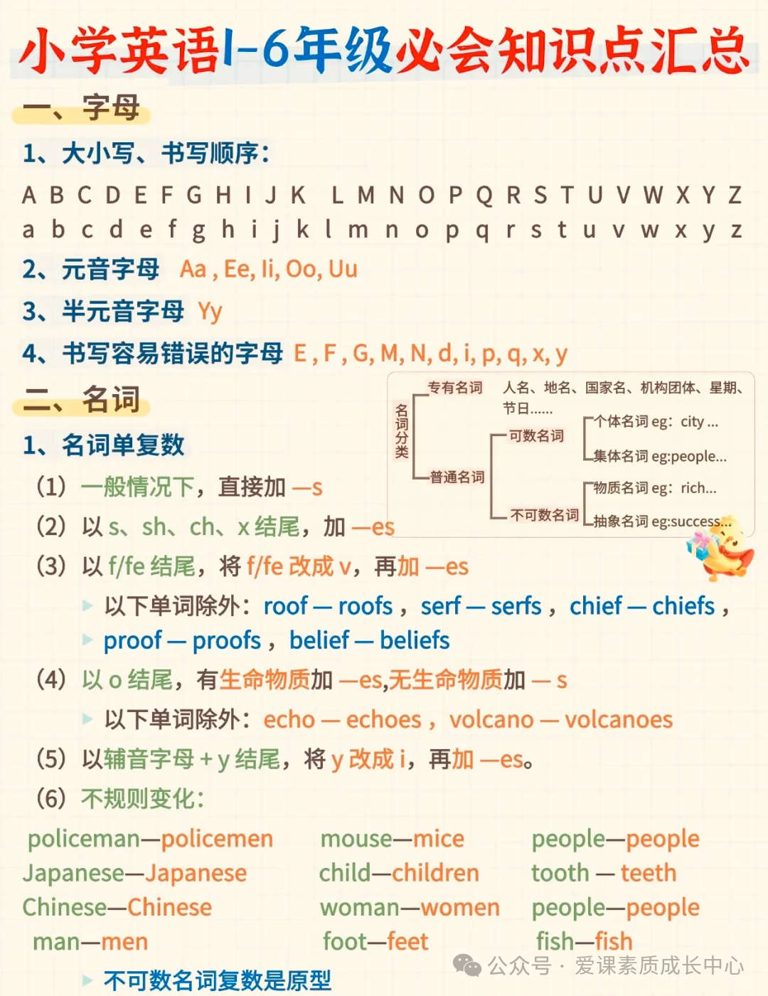 家长们看过来!小学英语知识点归纳总结,孩子开学复习不用愁!